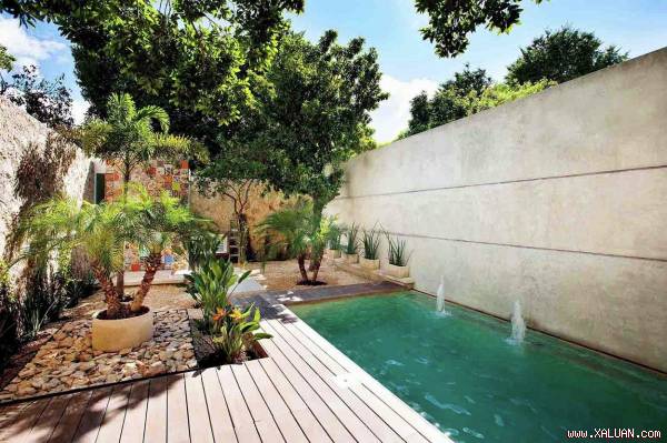 Ngôi nhà sở hữu một không gian bên ngoài đẹp đến nao lòng với khu vườn xanh mát và bể bơi. Vẻ xanh tươi đẹp mắt của khu vườn như một nguồn sinh khí đầy sức sống của căn hộ, đặc biệt với ngôi nhà tại thành phố. Vườn được thiết kế khéo léo, ấm cúng mà sang trọng bằng chất liệu gỗ tự nhiên, sỏi cùng với hệ thống đèn chiếu sáng. Thiết kế khu vườn tạo ra một không gian lý tưởng để tận hưởng mỗi dịp cuối tuần, hay sau những giờ học tập và làm việc căng thẳng.